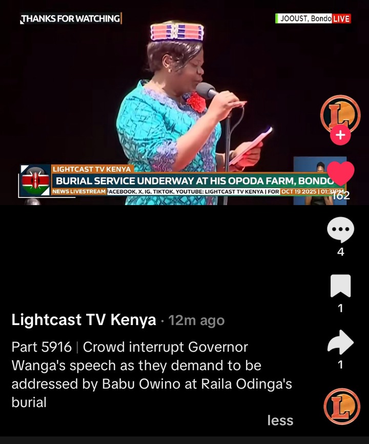 However Wanga assumed the chants and she went on to invite Governor Ochilo to speak to the mourners, denying Babu Owino a chance to great the Mourners.