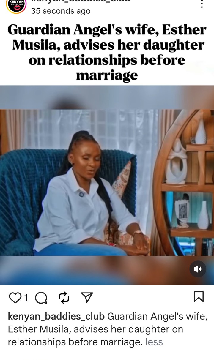 Guardian Angel’s wife, Esther Musila has caused stir online, after she decided to publicly give her 30 years old daughter, an advise on relationships before marriage, and she basically told her that she still has time and she should not rush into marriage.