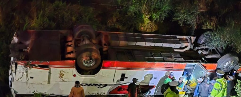 The latest accident is of Ena Coach Bus, the bus lost control and veered of the road, after being hit by a truck in Maai Mahiu. Sources have revealed that the truck driver lost control of his truck, he hit the bus from behind, and the impact made it to collide with two other vehicles, before it overturned.
