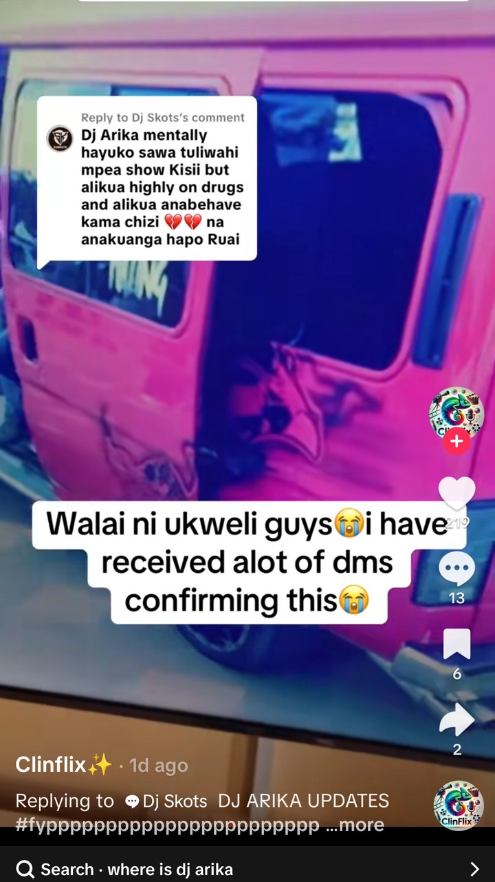 Some Kenyans have even shared videos showing his current situation, and from the video you can clearly tell that Arika is not doing okay.