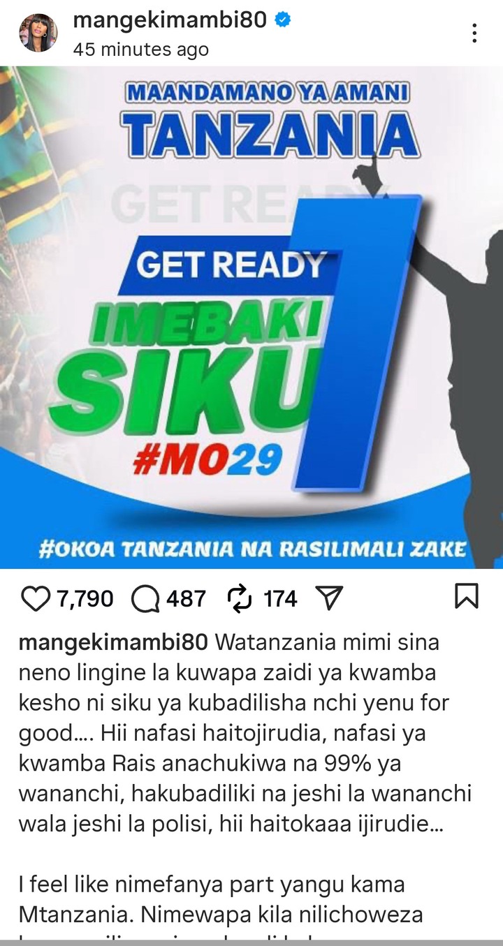 Tanzanian people led by the GenZs and some famous celebrities are now planning for a mega protest on 29th October 2025. That is the general election day, and they are planning not to vote, but to go and demonstrate in the streets to overthrow Samia Suluhu. Remember Suluhu is contesting for the presidential seat alone, she has jailed all her potential competitors, leaving Tanzanians with no choice but her alone.