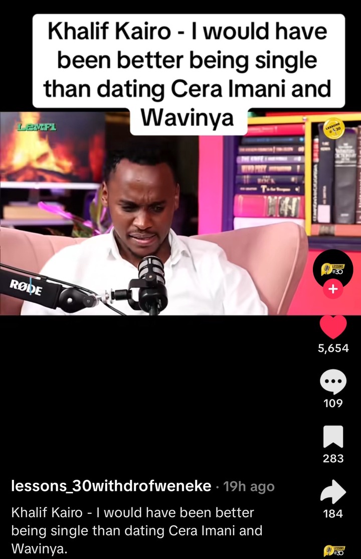 ” I Regret Dating Cera Imani And Wavinya, Heri Ningebaki Tu Single” Khalif Kairo Says.