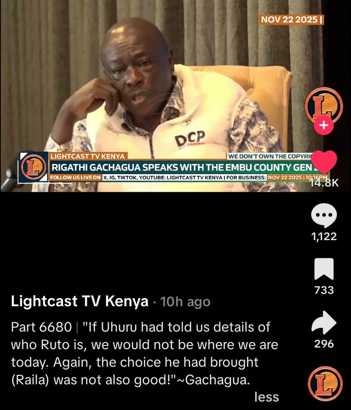 DCP party leader and the former deputy president, Rigathi Gachagua, says that Uhuru could have explained very well in details when he was saying that Ruto wasn’t a good man.Gachagua says that if he could have done that, Kenya could have been in good shape today, again Raila wasn’t a choice.