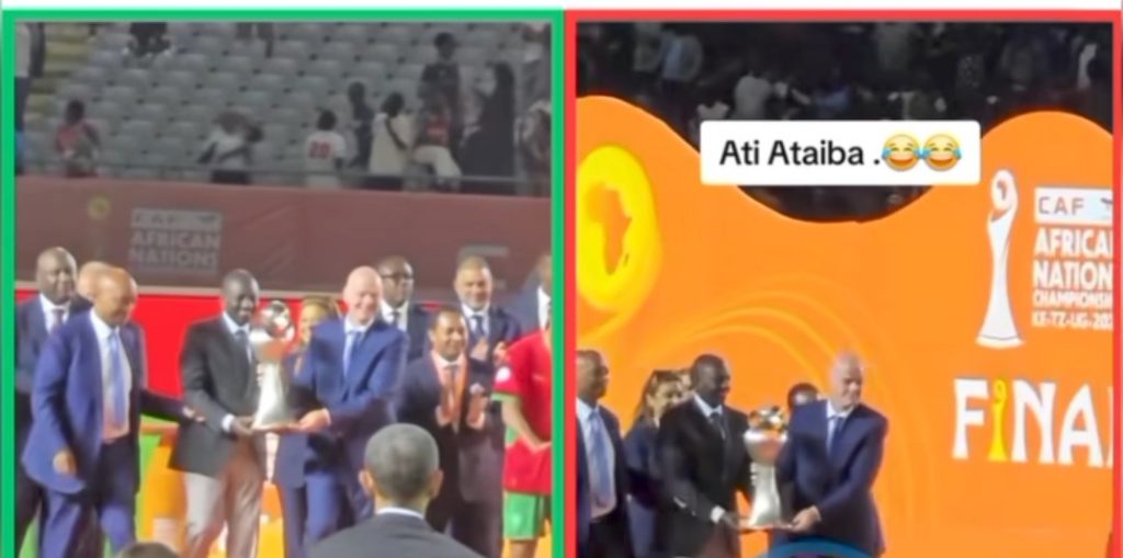 President William Ruto and Fifa President Infatino were the ones who were privileged to hold the CHAN trophy at Kasarani stadium, and they presented it to the winners of the tournament , Morocco.