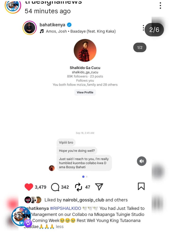 Bahati on his post, he claimed that he had talked to Shalkido and they were to work together next week. He however didn’t post the evidence to prove that he indeed had a conversation with the late Shalkido and they were to work together.