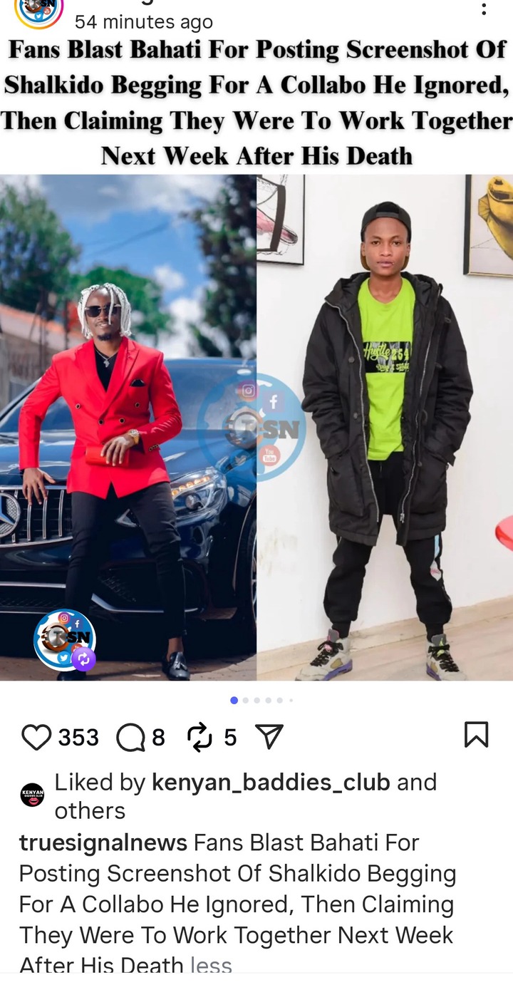 Controversial Kenyan musician Kevin Bahati has been on the receiving end from Kenyans online, this is after he decided to post a screenshot of Shalkido begging him for a collabo last month.
