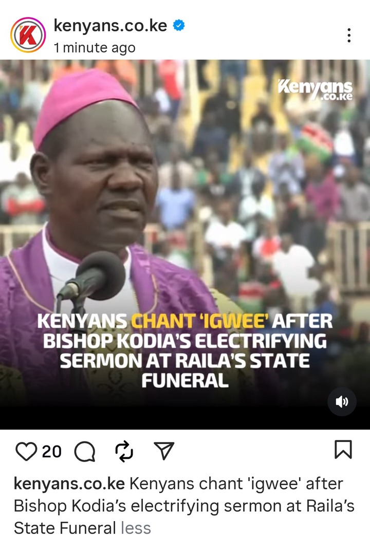 His sermon really touched the hearts of many Kenyans, and they decided to chant ‘ Igwee’ as they bow down to the Bishop and give him a standing ovation for such a powerful sermon. He was fearless and decided to call a spade a spade and not a big spoon.