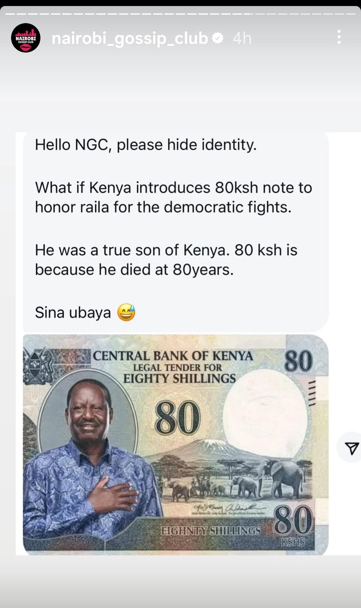 Kenyans Demand Government To Introduce 80 Ksh Note To Honour Raila Odinga.
