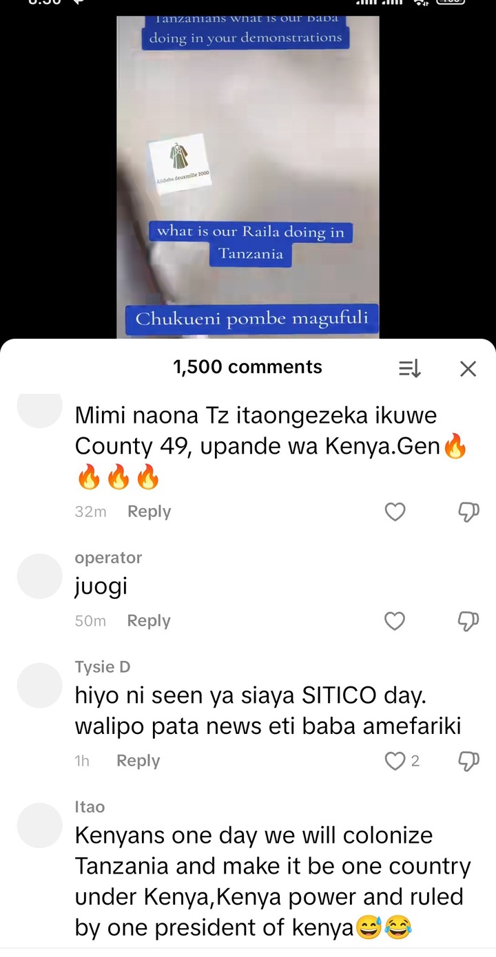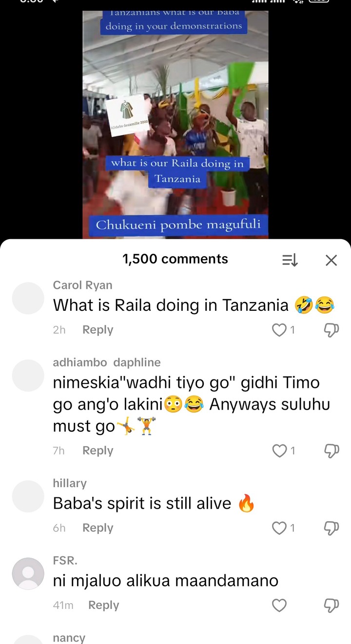 Kenyans were not expecting to see such things, because the demonstrations is for Tanzanian people and they are expected to appreciate their leaders like the late Pombe Magufuli and even Julius Nyerere. But for them appreciating Raila Odinga, it is quite a very good gesture.