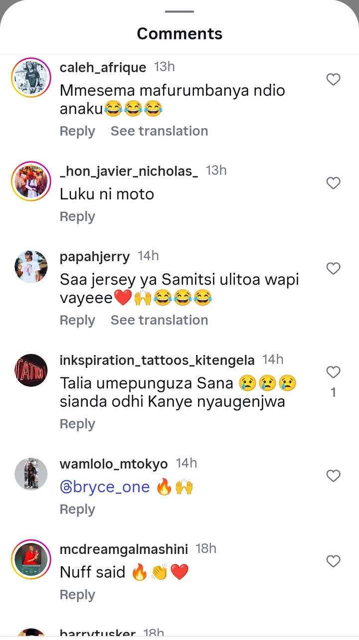 Here are the screenshots of some of the comments from Kenyans on Instagram.