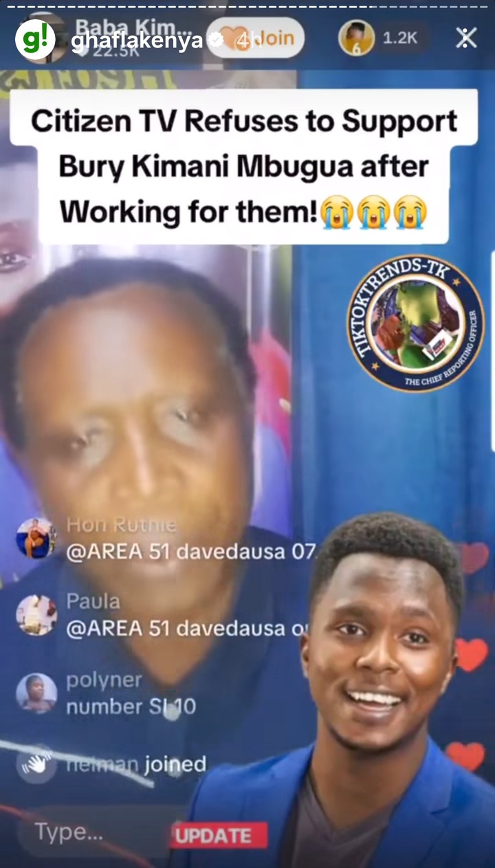 Kimani Mbugua’s Dad Call Out Citizen TV For Refusing To Support The Burial Of Kimani.