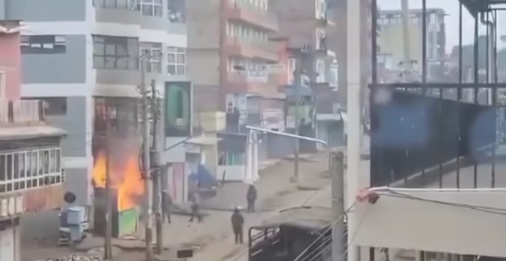 A Video of how Magunas supermarket fire started has been leaked online, and about four police officers in uniform and one in plain are spotted at the scene. The fire was small and could be contained but the police were just there watching, some were throwing stones and objects at the fire.