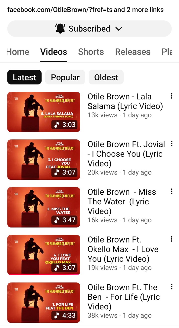 Kwani Mliacha Kumskiza? Otile Brown Drops 5 New Songs & None Of Them Has Over 50K Views In 24 Hrs.