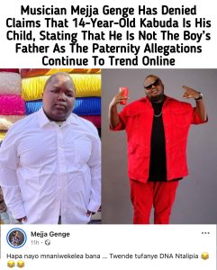 In a surprising turn of events, renowned Kenyan musician Mejja Genge has publicly addressed recent rumors suggesting he is the father of 14-year-old TikTok sensation Kabudaa. The viral young content creator, known for his impressive physique and engaging videos, has ignited social media debates about his resemblance to the celebrated artist.