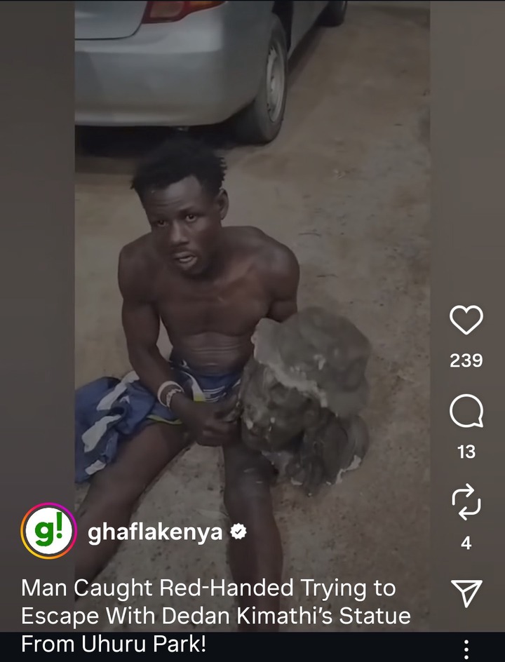 ” Nilikuwa Napeleka Scrape” Kenyan Man Caught While Trying To Escape With Dedan Kimathi Statue.