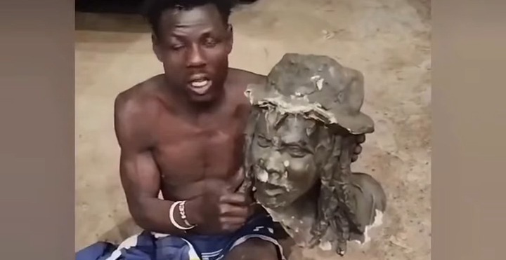 The young man was forced to explain why he vandalized the statue and why he was stealing it. After being beaten for few seconds, the man admitted that he is used to stealing metals, and selling them to scrape dealers. He said that he wanted to go and sell the statue to a scrape dealer.