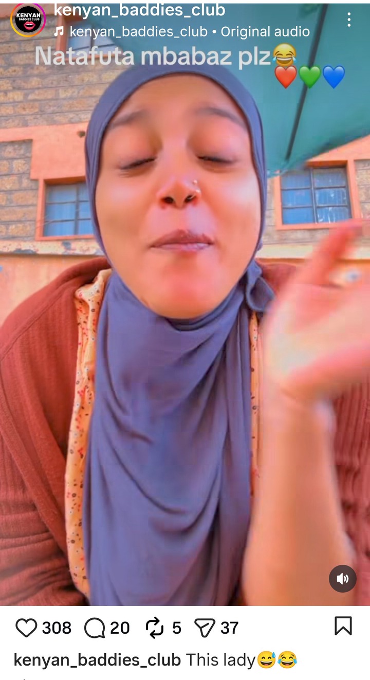 A video of a Somali lady, who is residing in Kenya, asking for an old man with money to take her ( Mubabaz), is currently going viral online.