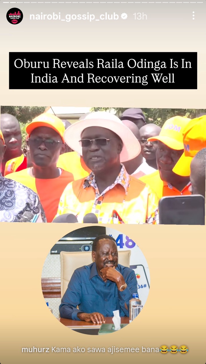 Netizens online were claiming that Raila’s health was detoriating, but the family member has just confirmed that the former prime minister is just in India and his medication is going well, he is recovering and he is very healthy and in a stable condition. We wish him a quick recovery.