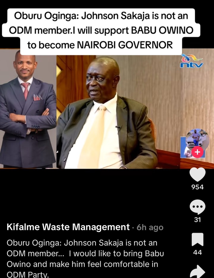 When asked about Sakaja, Oburu said that Sakaja is a member of UDA, and for him he will only support the members of ODM, so the way things are, ODM will have a candidate for Nairobi gubernatorial seat, and most probably its Babu Owino, then he must be assured that the party will support him fully. He should just feel comfortable, no one is chasing him.