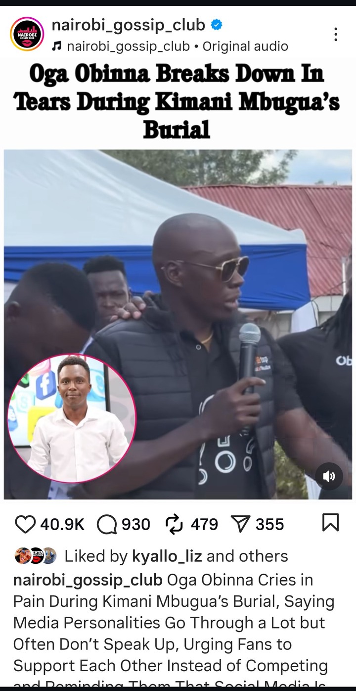 Obinna was in tears because Kimani Mbugua was his close friend, Obinna was the one who convinced Sonko to help Mbugua, he was very close with the family to monitor the health conditions of Kimani. He was very helpful and did some fundraising to help in the treatment of Kimani.
