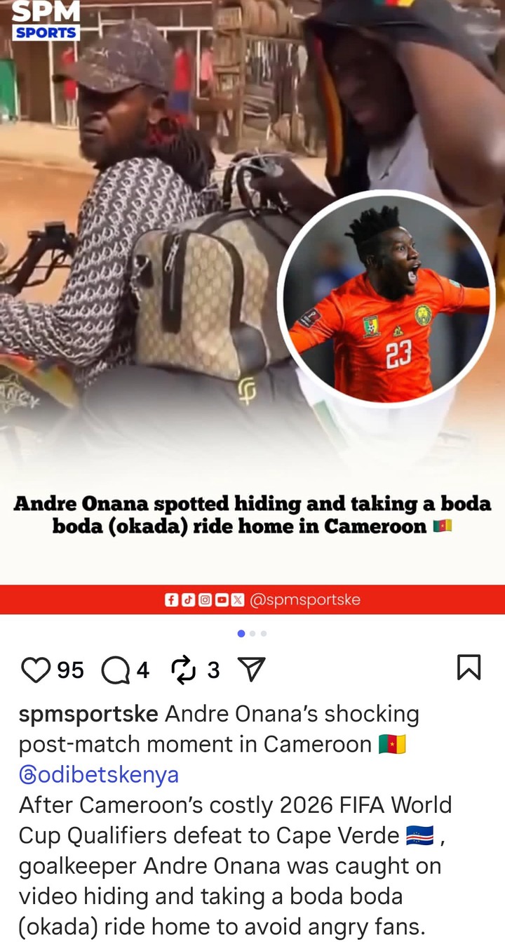 Onana Spotted Hiding & Taking Boda Ride Home In Cameroon, After Defeat To Cape Verde.