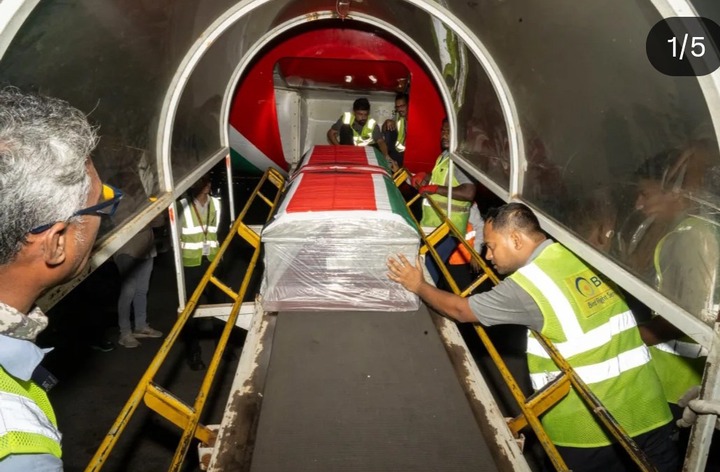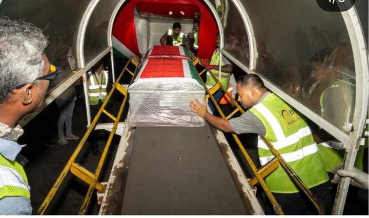 A delegation that left Kenya to Mumbai to go and help the repatriation process, arrived safely, and the journey of bringing Raila’s body back home was facilitated well. Photos showing a heartbreaking moment, when the body of the late prime minister was being loaded into the plane are currently going viral online.