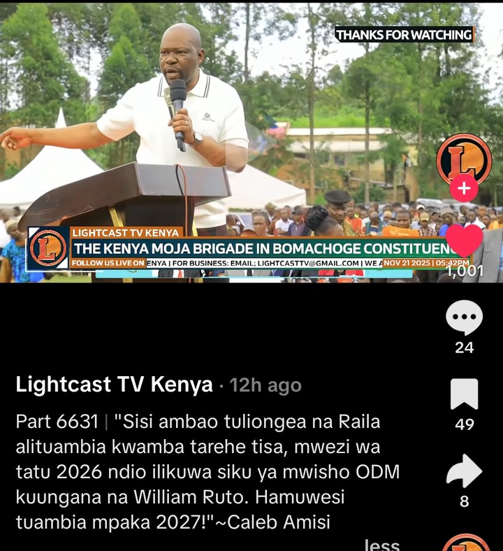 Just a day after ODM deputy party leader Geoffrey Osotsi revealed that broadbased government will end in 4 months time, Caleb Amisi has also confirmed the statements. He said that Raila was clear that the interaction between ODM and Ruto will end on 9th March 2026.