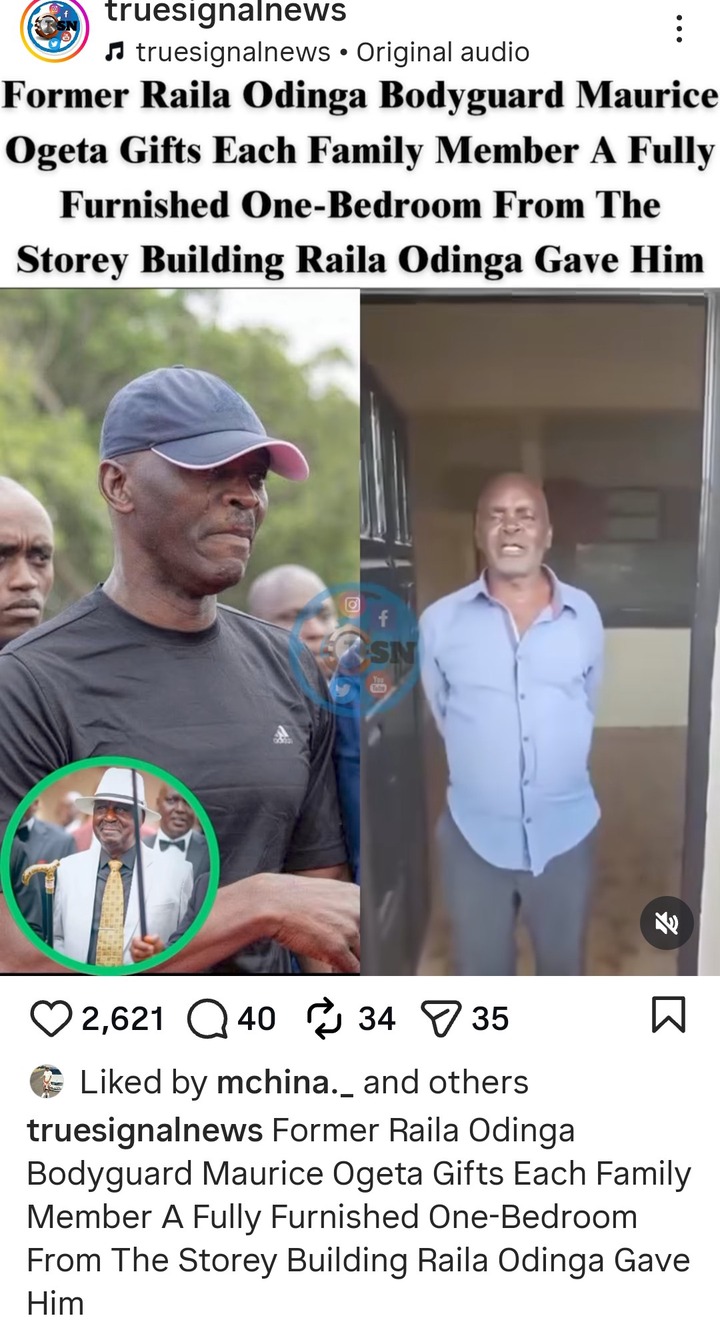 Former Raila Odinga’s loyal bodyguard, Maurice Ogeta has caused stir online, this is after he decided to gift each of his family member, a fully furnished one bedroom house, from the apartment that Raila Odinga gave him.