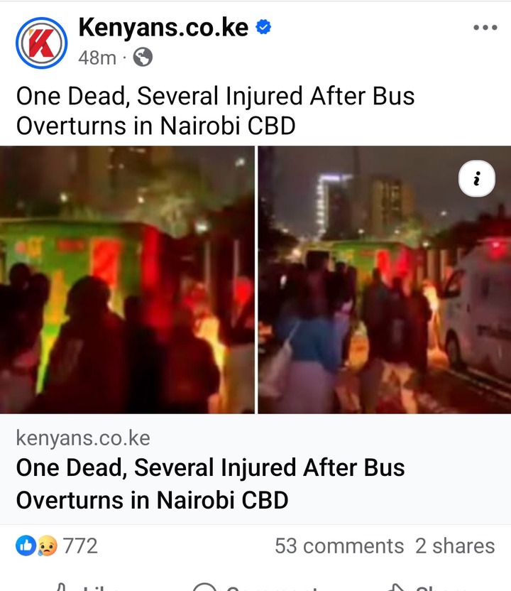 A very tragic accident happened in Nairobi CBD on Monday 13th October at around 11pm. The accident was involving a City Hoppa bus, that was leaving Nairobi CBD, heading towards Ngong road.