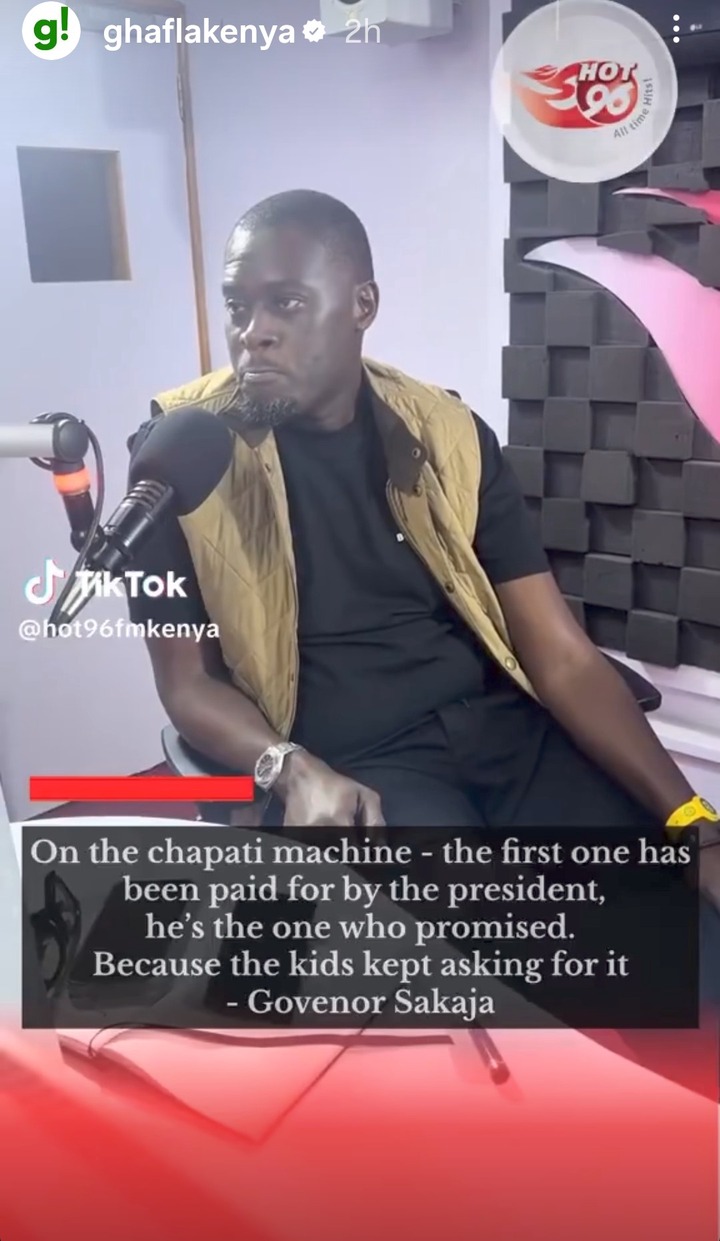 Governor Johnson Sakaja has said that president William Ruto promised Nairobi pupils that he will buy for them a chapati making machine, the machine was to make 1 million chapatis daily. The president has already paid for one machine, and it will be making about 8000 chapatis daily.