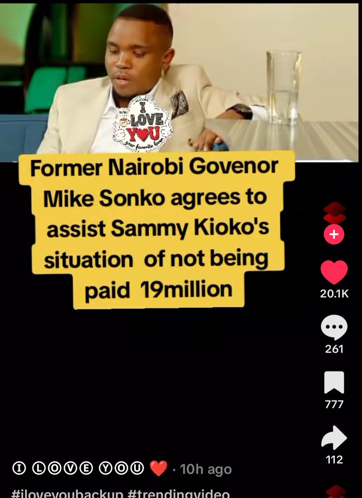 Former Nairobi Governor, Mike Mbuvi Sonko has decided to come through for Sammy Kioko. Sonko said that he is ready to assist, and make sure that Kioko has been paid Ksh.19 Million, that Machakos County has refused to pay him.