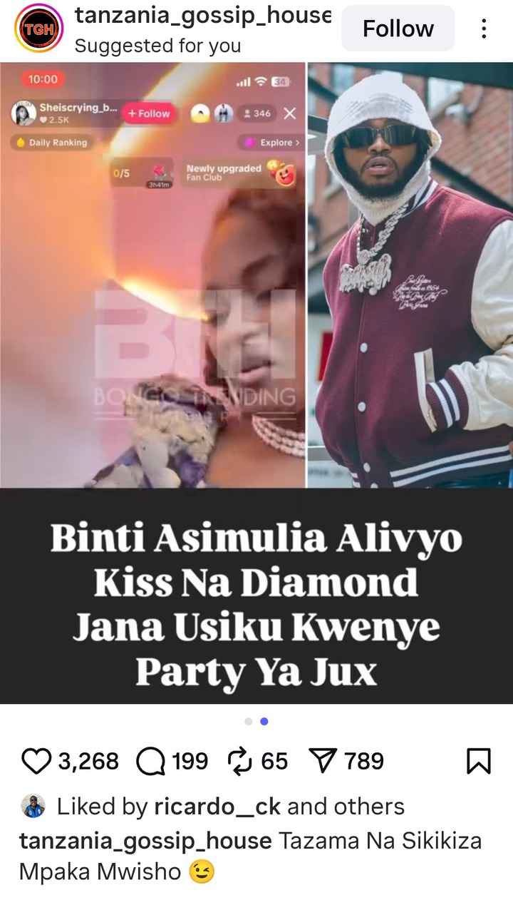 Tanzania Lady Reveals How She Kissed Zuchu’s Husband Diamond Platnumz During Juma Jux Party