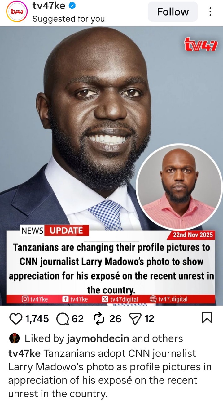Tunakupenda:Tanzanians Are Now Changing Their Profile Photo’sTo CNN Journalist Larry Madowo’s Photo.