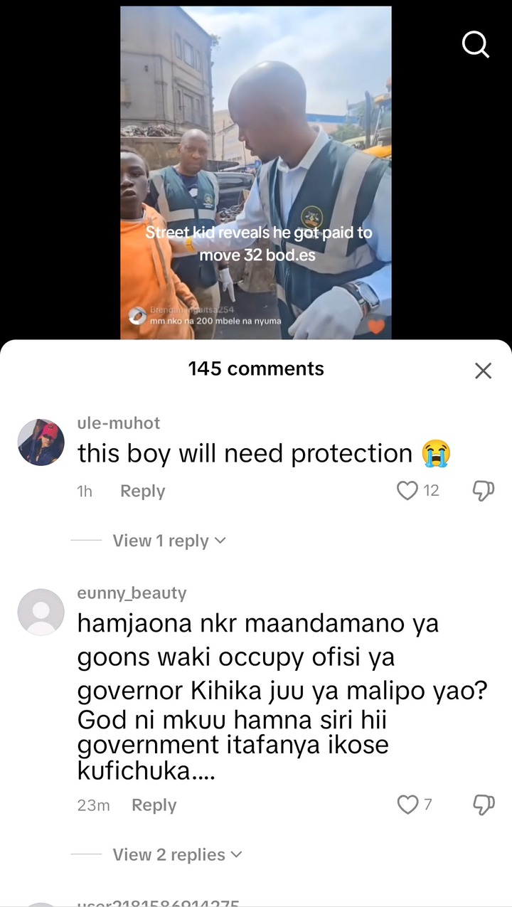 Here is the screenshot of some of the comments from Kenyans on Tiktok.