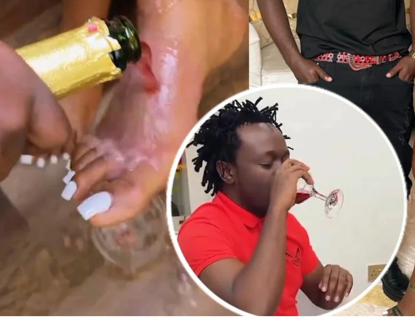 Video: Bahati Drinks Wine That Was Poured On Diana’s Foot & Then Into A Glass.