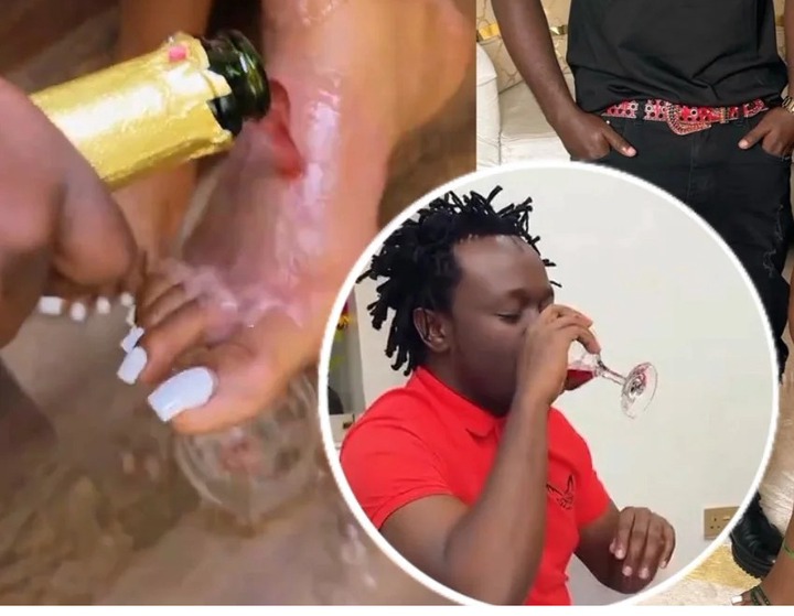 Video: Bahati Drinks Wine That Was Poured On Diana’s Foot & Then Into A Glass.