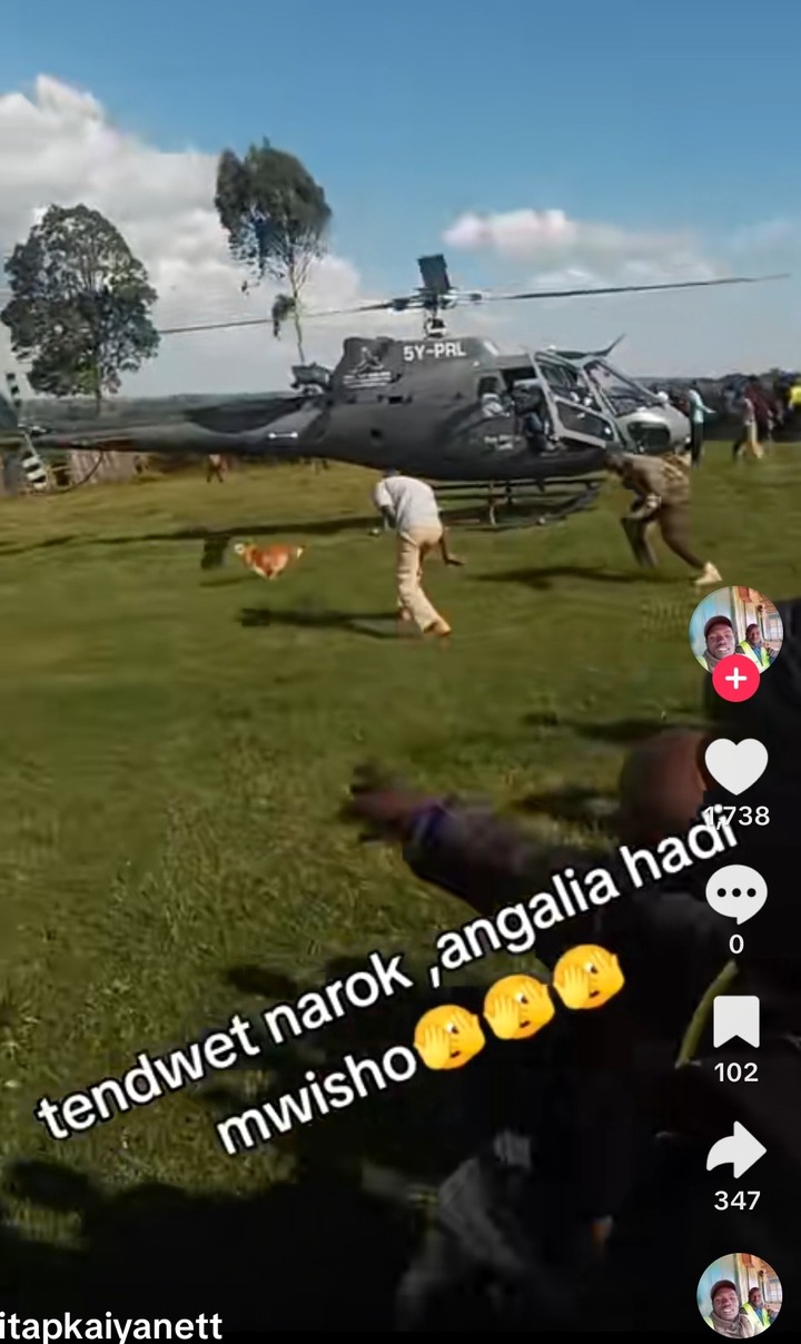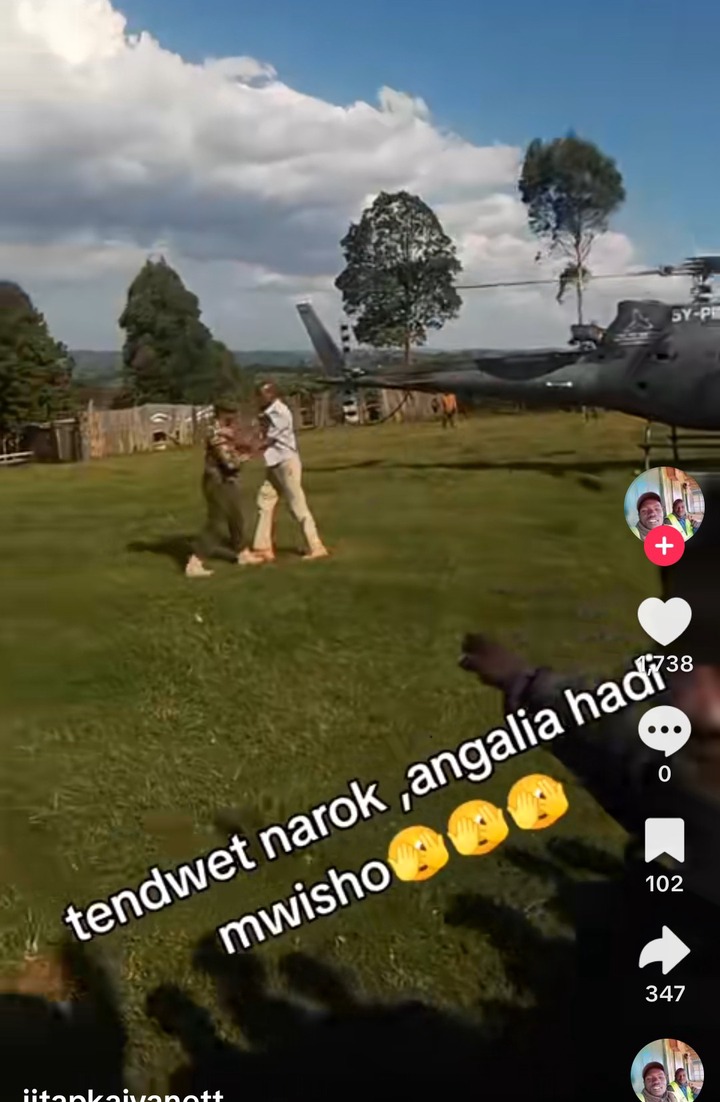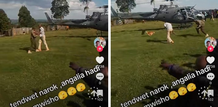 The incident happened in Narok, Tendwet, in the video, the man was captured getting closer to the military chopper, which was about to take off. That was a very risky move, and the police officer who was alert had to intervene, by trying to stop him.